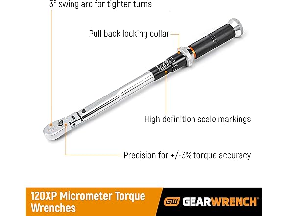 GEARWRENCH 85181 1/2" Drive 120XP Micrometer Torque Wrench, 30-250 ft/lbs