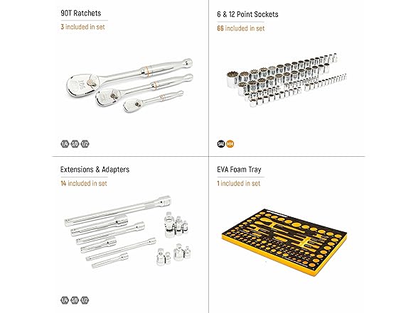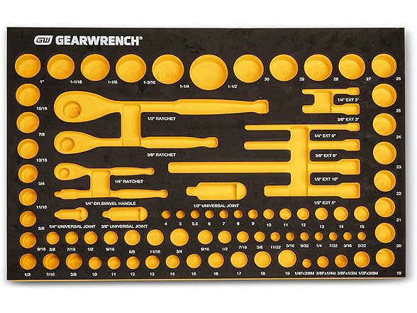 GEARWRENCH 86529 83 Pc. 1/4, 3/8", 1/2" 90-Tooth SAE/Metric Mechanics Tool Set with EVA Foam Tray