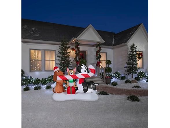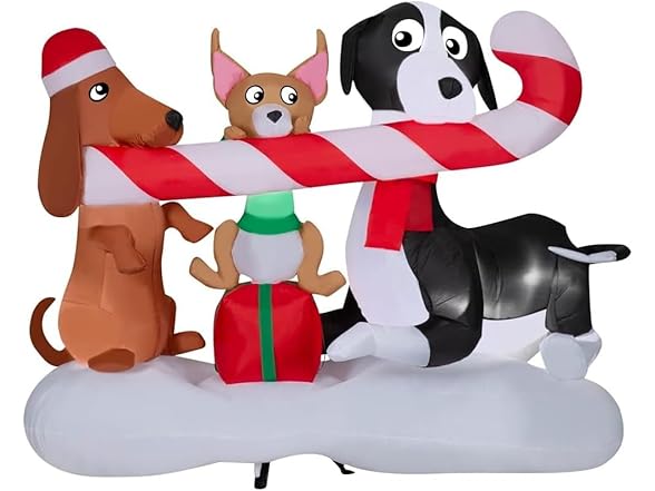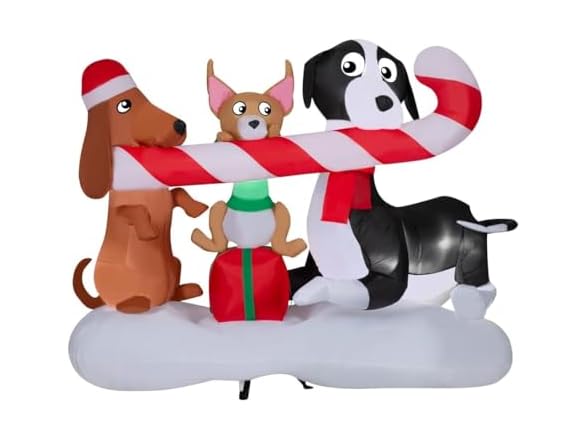 Gemmy Christmas Inflatable Dogs Sharing a Candy Cane Scene, 4.5 ft Tall, Multi