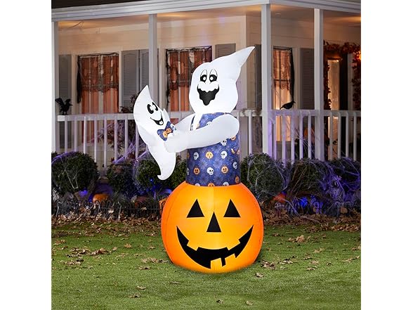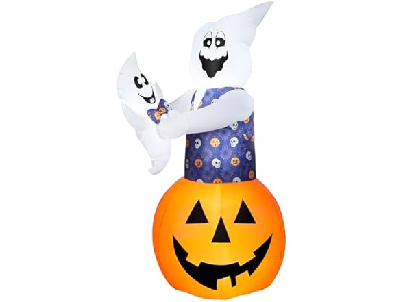 Gemmy Animated Halloween Inflatable Ghost with Baby Ghost, 6 ft Tall, Multi