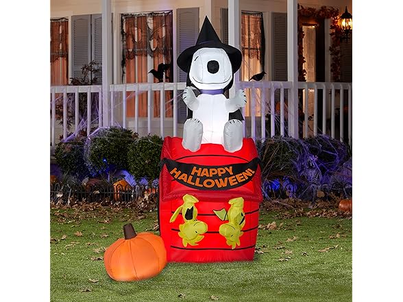Gemmy Airblown Inflatable Snoopy Halloween House w/LEDs Scene Peanuts, 6 ft Tall, Multi