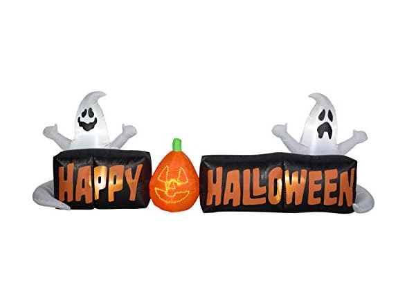 Gemmy Lightshow Airblown Micro Lights Sign Happy Halloween w/Ghosts and JOL Scene (White), 3 ft Tall