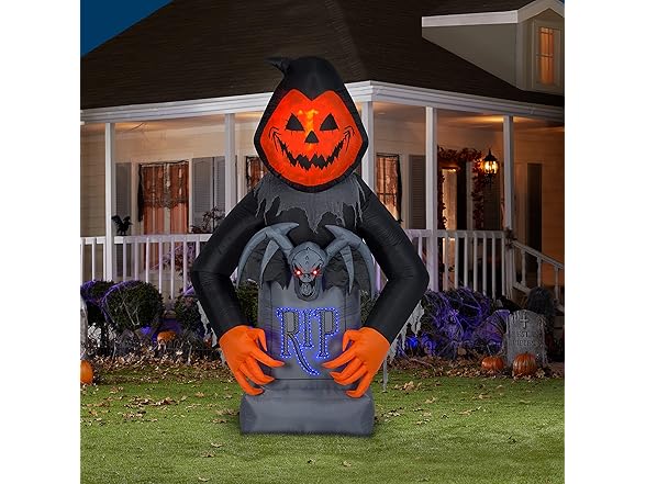 Gemmy LightShow Airblown Inflatable Pumpkin Reaper with Fire & Ice Technology and Micro LED Lights, 8.5 ft Tall