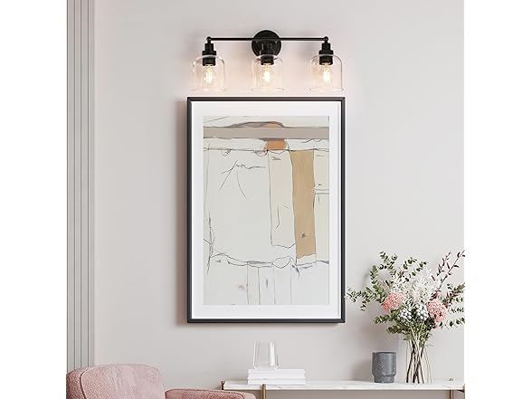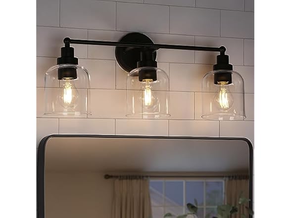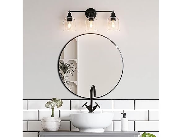 In the Box: (1) GEPOW Bathroom Wall Light Fixtures, 3-Light Black Vanity Light with Clear Glass Shade, Modern Farmhouse