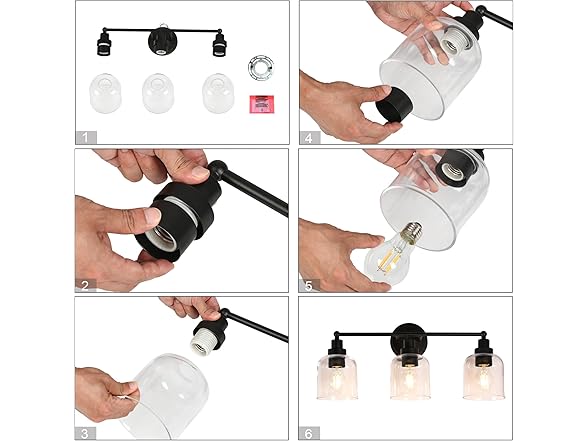 - Easy Assembly: This 3-light vanity light arrives part assembled, and all mounting hardware and detailed instructions are included for quick and easy installation. Please carefully read the user manual before you are ready to install.