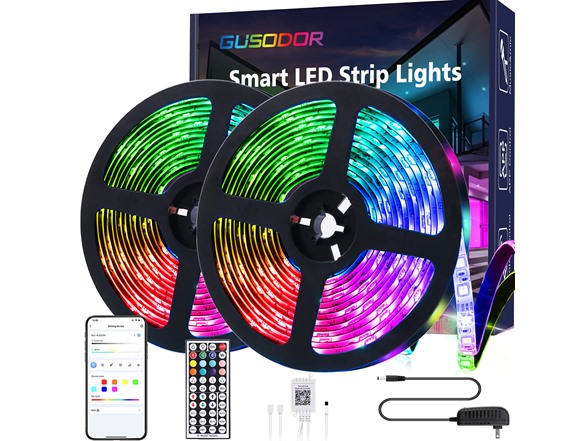 GUSODOR Led Strip Lights 32.8 Feet Smart Led Lights for Bedroom Color Changing Led Light Strips Music Sync RGB Led Rope Lights with Remote App Control Led Tape Lights for Room Party Home Decoration