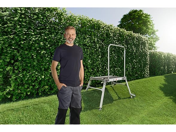 - 🌿 NON-SLIP PLATFORM & BUILT-IN HANDRAIL FOR SAFE WORKING CONDITIONS-Stay safe and steady with the non-slip standing platform and sturdy handrail that delivers extra support during long tasks at height—perfect for garden projects requiring extended reach and stability.