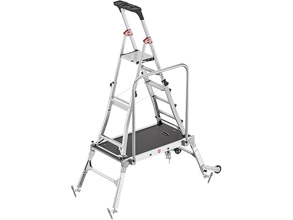 - 🌿 ADJUSTABLE HEIGHT PLATFORM WITH SAFETY RAIL FOR ELEVATED TASKS-The Hailo LP Outdoor Platform Ladder features an adjustable height mechanism and integrated safety rail, offering a stable and secure surface for hedge trimming, pruning, painting, and landscaping.