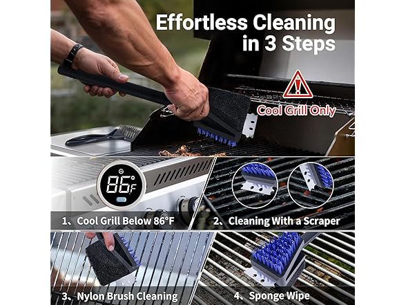 - Universal Compatibility & Important Usage Guidelines: Safely effective on a wide range of grill grate materials, including porcelain, ceramic, and infrared. Important: Always ensure grill is completely cooled before cleaning. Hand wash with detergent and hang to dry. Plastic components are not heat-resistant. Designed to keep your grill performing like new with proper care