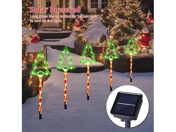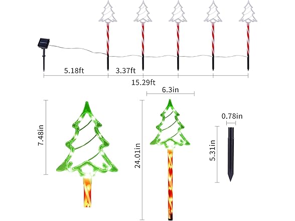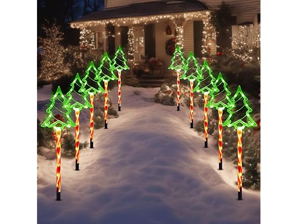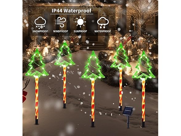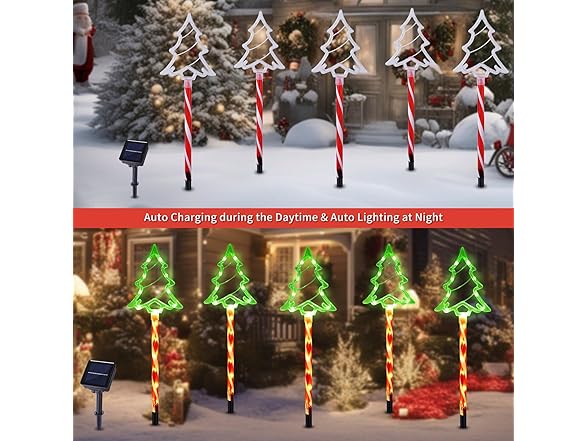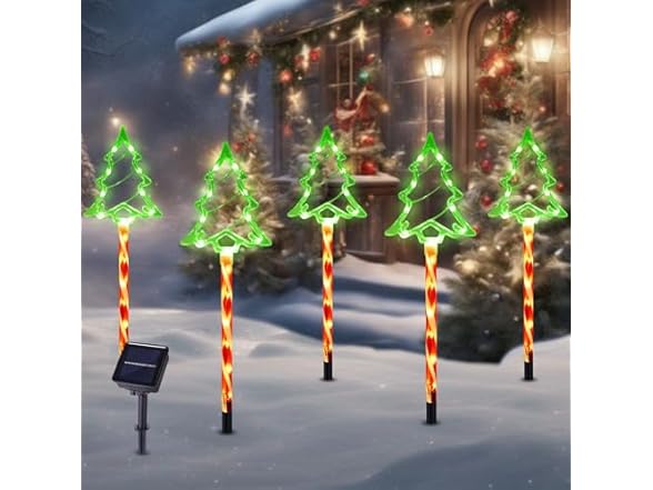 Hakol Christmas Solar Pathway Lights Outdoor Decorations, 8 Modes Xmas Tree Candy Lights Waterproof Led Garden Stake Light for Walkway Yard Lawn Porch Holiday Decor (Red Tube Tree, 5 Pack)