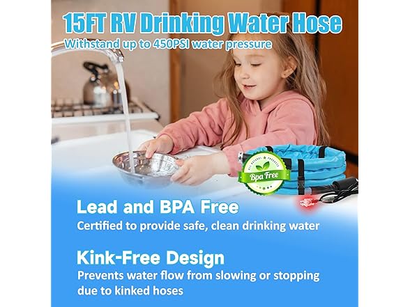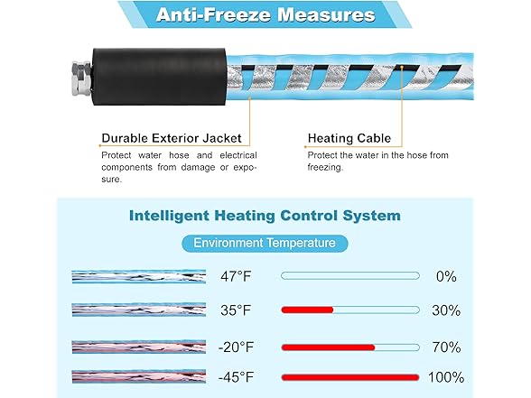 OEBLD Heated Water Hose for Rv (15ft L x 5/8"ID) 4.0 Upgraded Function with Energy Saving Thermostat to Keep Drinking Water Running in down to -45℉, Designed for Campers,with Storage Bag, Anti-Freeze
