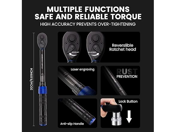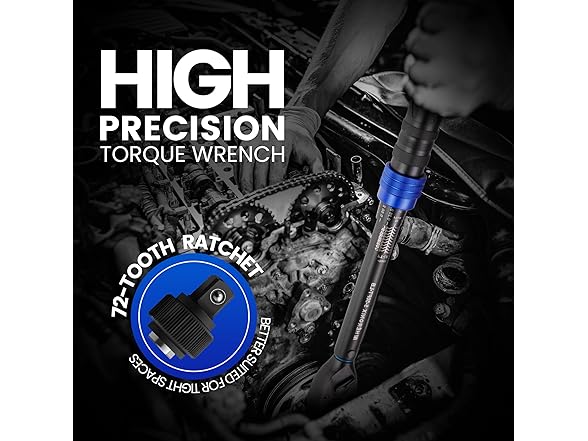 3/8-Inch Drive Click Torque Wrench, 5–50 Ft-Lb (6.8–67.8 Nm) ±3% Accuracy, Loud Click, Dual Scale, 72-Tooth Mini Torque Wrench for Bike, Motorcycle, Car & Spark Plug Maintenance