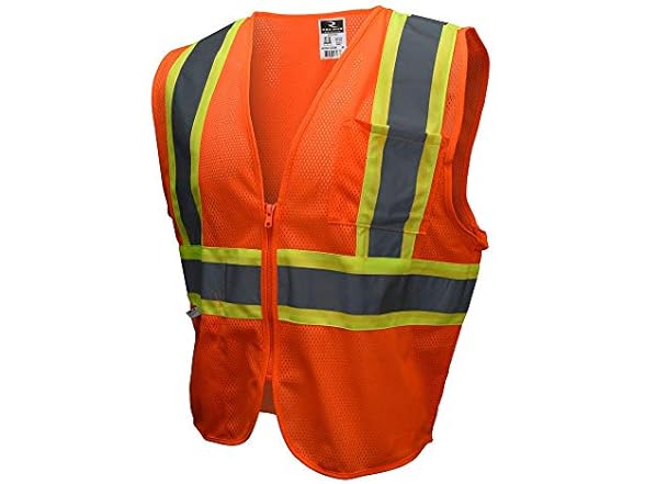Radians SV22-2ZOM-M Polyester Mesh Economy Class 2 High Visibility Zipper Closure Vest with Two-Tone Trim, Medium, Orange