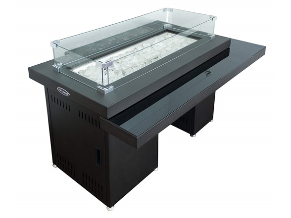 Chilly nights call for an outdoor heater, and what better way to solve this problem than with our patio heater. This patio heater will make a great addition to your patio, as it will allow you to enjoy the outdoors when the temperature starts to drop. This beautiful CSA approved patio heater is easily assembled. Enjoy your backyard a little more by adding this elegant yet modern two-tiered propane fire pit. A battery-operated pulse ignition gives way to a propane heater that emits up to 50,000 BTUs of heat. Clear fire glass covers the burner and adds a touch of elegance. An easy access door located at the base allows you to easily conceal a 20 lb. propane tank (not included).