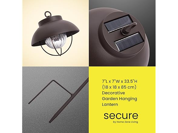 - FARMHOUSE CHARM FOR YOUR GARDEN – Enhance your outdoor décor with the Home Zone Security 2-Pack Farmhouse Style Hanging Lanterns, featuring a decorative bronze finish and rustic metal construction that adds warmth and elegance to any yard, pathway, or patio.