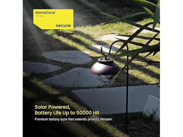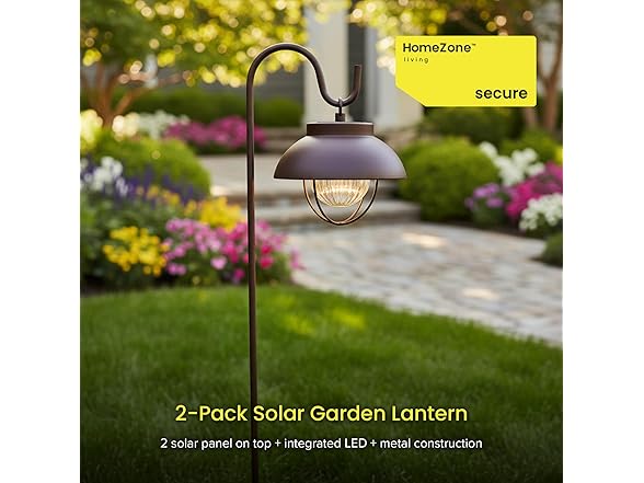 Add charm and character to your outdoor spaces with the Home Zone Security 2-Pack Farmhouse Style Solar Powered Metal Garden Hanging Lanterns. Designed with a decorative bronze finish and crafted from anti-rust metal, these lanterns offer a rustic elegance that's built to last through all seasons. Each lantern features a versatile lighting effect—choose between a mesmerizing rotating glow or a steady warm 3000K LED light to set the perfect ambiance for your garden, patio, or walkway. With 15 lumens of brightness, they provide just the right amount of illumination to enhance your outdoor décor without overpowering it. Powered by high-efficiency solar panels and long-lasting LiFePO4 rechargeable batteries, these lights automatically turn on at dusk and off at dawn, offering hassle-free, energy-efficient lighting every night. Installation is a breeze with included shepherd hooks and ground stakes, allowing you to place them wherever you need a cozy, decorative touch. Whether you're lighting a garden path or creating a magical nighttime atmosphere, these farmhouse-style lanterns are the perfect blend of function and charm.