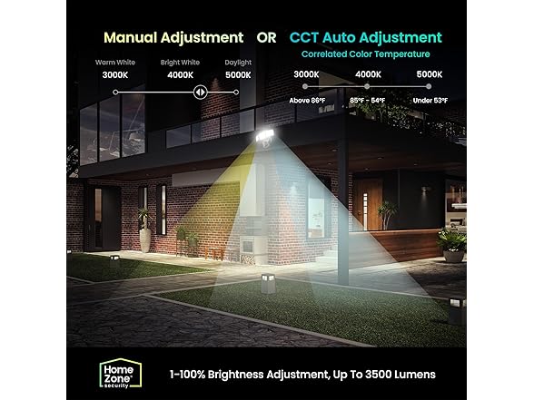 - ✔ 3000-5000K COLOR TEMPERATURE ADJUSTABLE: Adjusts from a warm 3000K up to 5000K depending on preference via the app. Set to 3000K for a warmer, cozier, and more amber light for patios and entertaining areas to 5000K for bright white light on driveways, side yards and other security sensitive areas.