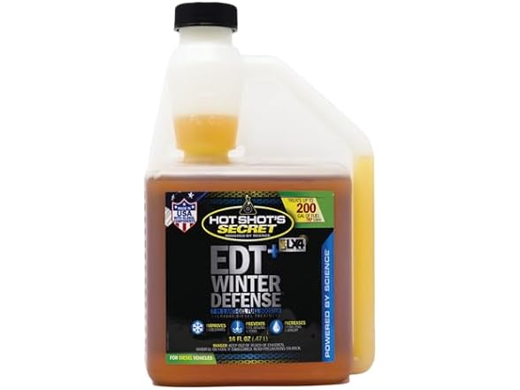 EDT+ Winter Defense is our bestselling Everyday Diesel Treatment - now with added anti-gel properties. Our fully formulated 7-in-1 diesel fuel additive prevents your diesel fuel from gelling and icing, even in subzero temperatures. Both a fuel system cleaner and a powerful cetane booster, our EDT+ Winter Defense also contains LX4 lubricity additive, a keep-clean detergent package and de-icer chemicals. EDT+ Winter Defense prevents paraffin wax precipitation during cold weather, by minimizing the size of the wax crystals and allowing the fuel to travel through the fuel filter at temperatures 20 degrees Fahrenheit below the cloud point (wax solidification point) of the diesel fuel.