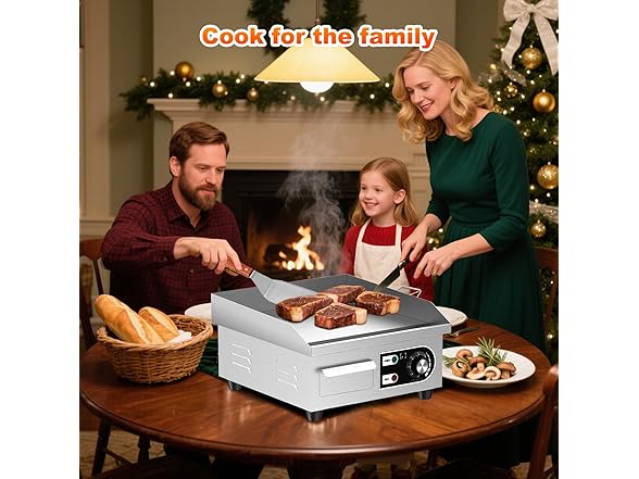 - Non-stick cooking surface: This electric stainless steel griddle features a food-grade iron cooking surface that develops a natural non-stick coating through seasoning. The high-quality coating aids in the even distribution of heat, avoiding localized overheating and burning of food. Post-cooking cleanup is a breeze—just wipe the surface with a damp cloth, and it’s ready to go.