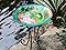 - Glass bird bath bowl with decorative and colorful hummingbird design.