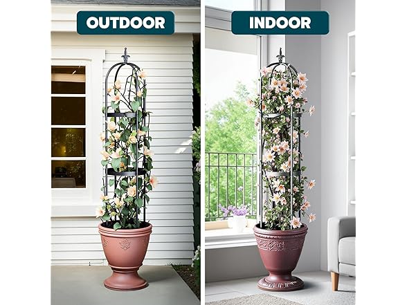 - ELEGANT OBELISK DESIGN: Our decorative plant trellis enhances outdoor spaces and interiors, adding sophistication while supporting climbing plants; As an indoor plant trellis, the design elevates houseplants and provides structure for growth