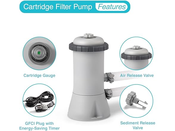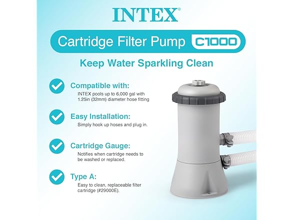 INTEX 28637EG C1000 Krystal Clear Cartridge Filter Pump for Above Ground Pools, 1000 GPH Pump Flow Rate