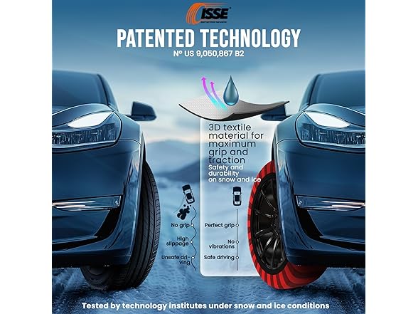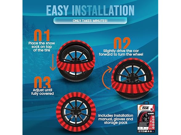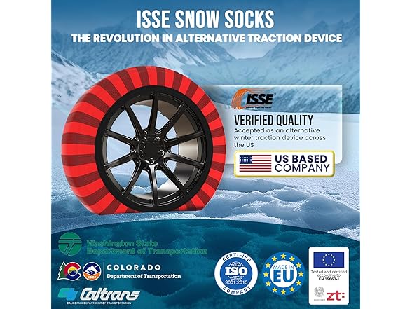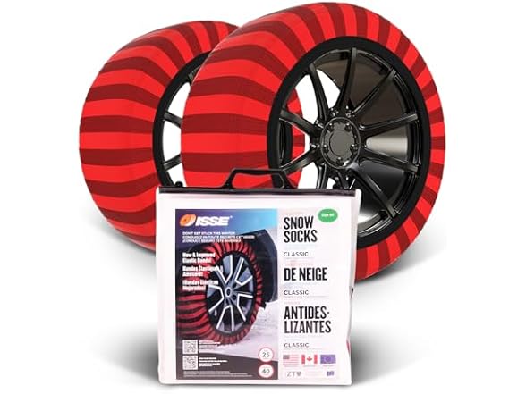 ISSE Snow Socks for Tires. Chain Replacement. Classic Size 62 Textile Traction for Optimal Tire Grip in Snow & Ice. Durable Multi-season Reuse. Easy Install. Emergency & Preventative Winter Safety
