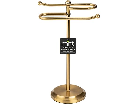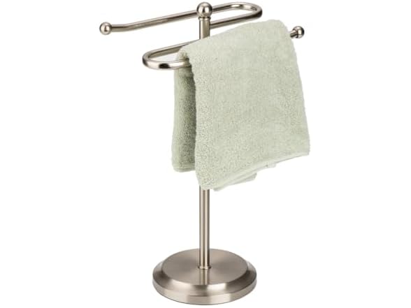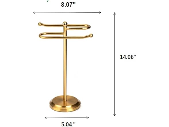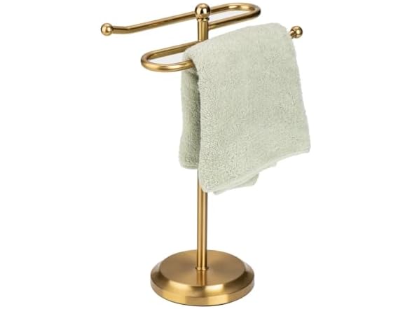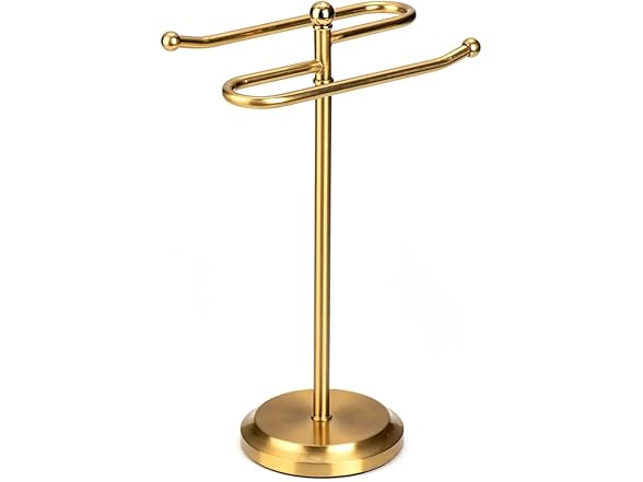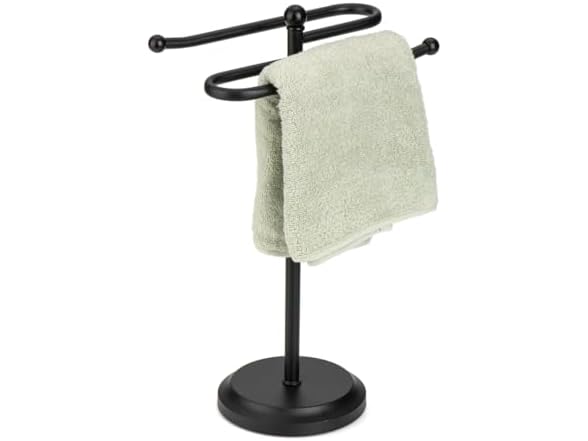 J&V TEXTILES Classical Steel Towel Rack Holder Stand with 2 Hanging Rings for Bathroom Vanity Countertops - Space Saving Hand Towel Holder -Choose Color