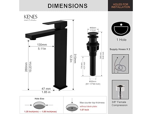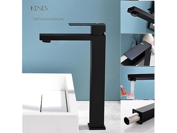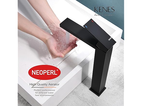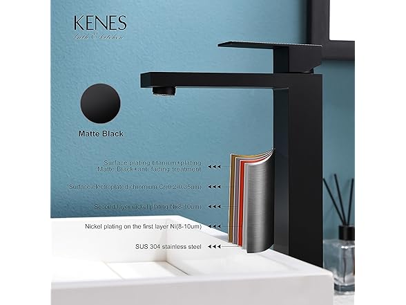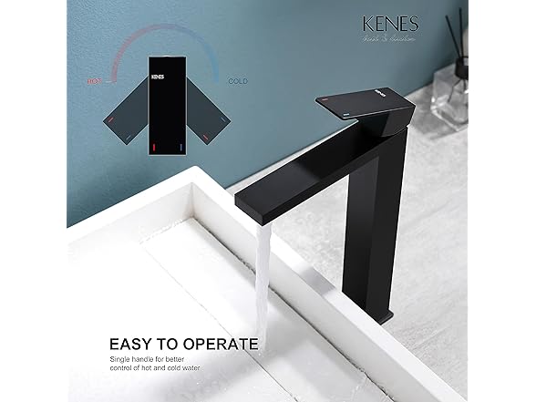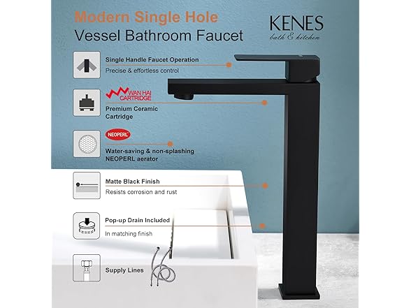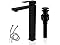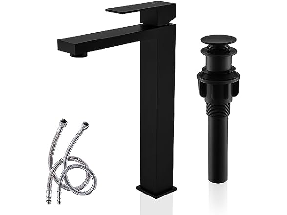 KENES Matte Black Bathroom Faucet Single Handle Tall Vessel Sink Faucet Vanity Bathroom Faucet Basin Mixer Tap with Water Supply Hose and Pop Up Sink Drain, LJ-9031A-2