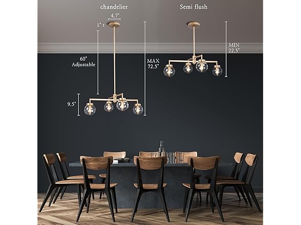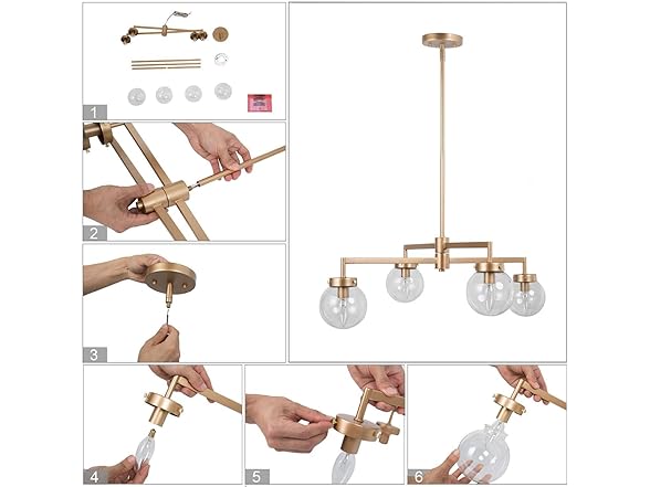 - Effortless Installation: This 4-light chandelier comes almost fully assembled, requiring only minimal assembly effort. Equipped with clear instructions and all essential mounting hardware, assembling and installing this elegant fixture is a straightforward and effortless task.