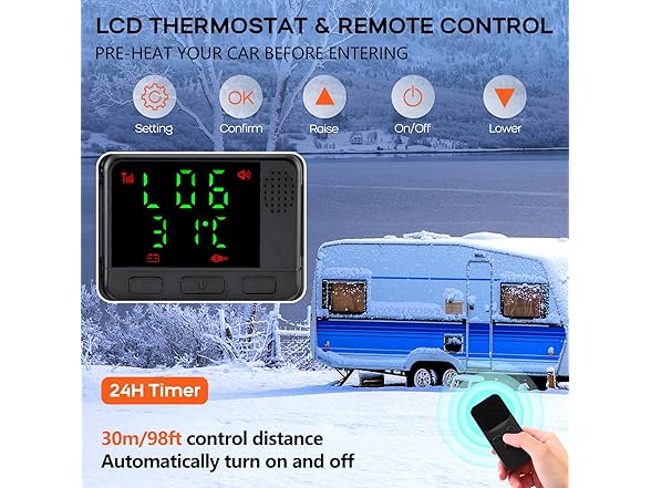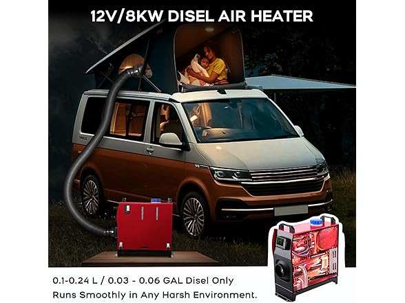 KYBOLT 12V 5KW Diesel Heater, All-in-One Diesel Air Heater, Portable Diesel Heater with LCD Monitor & Remote Control, Fast Heating for Tent, Car, RV, Truck, Camper, Trailer, Motorhome