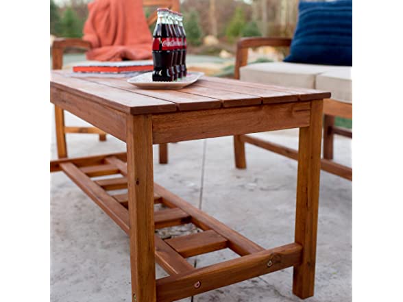 This gorgeous coffee table is sure to please at your next backyard barbeque, summer night hang out, or pool party. Stylishly designed with a Unique ladder base with a natural wood grain finish, this piece will complement any of your outdoor décor. Constructed of solid acacia wood, it’ll be a favorite for summers to come.