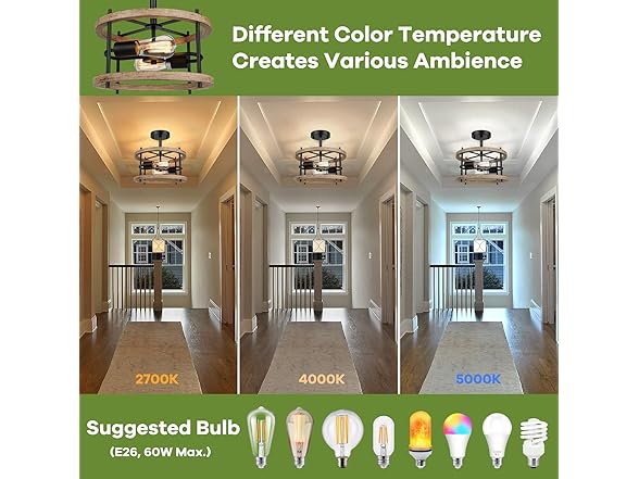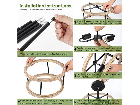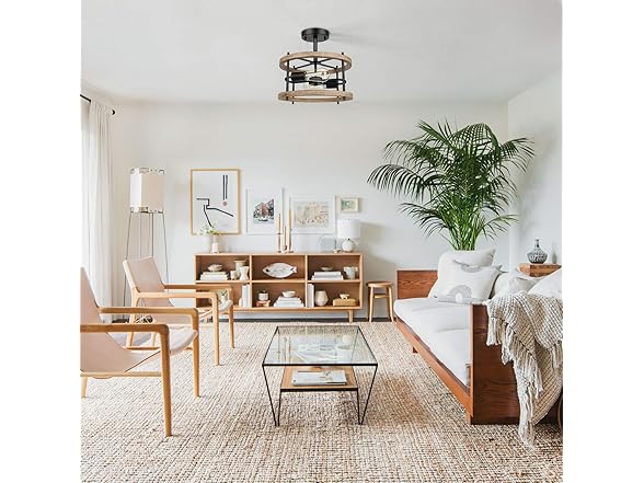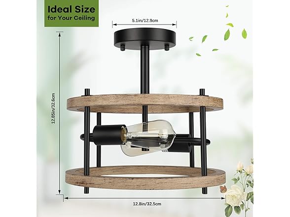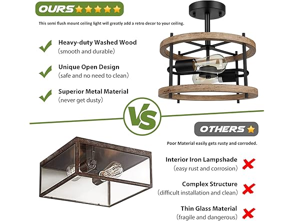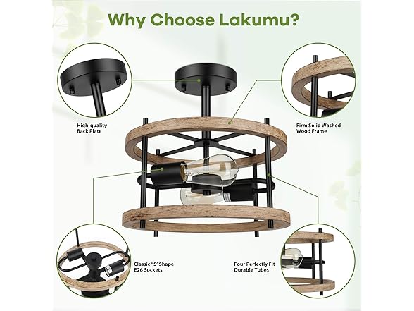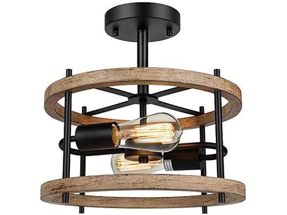 Lakumu 2-Light Retro Semi Flush Mount Ceiling Light Fixture, Rustic Vintage Wood Ceiling Light Black Metal, Industrial