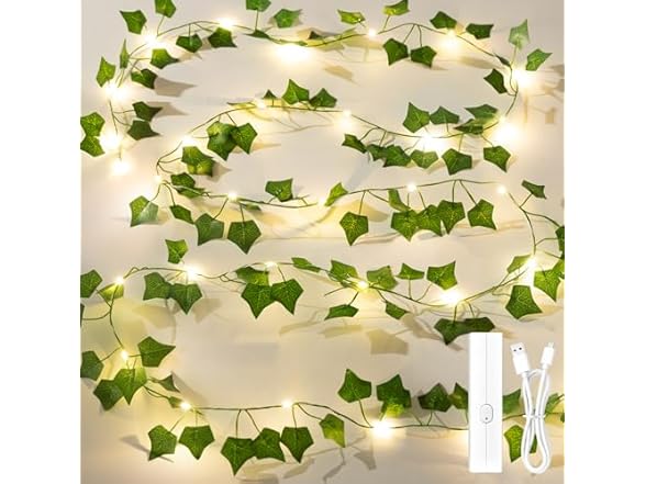 - 【Rechargeable & Eco-Friendly Ivy Vine Lights】 Say goodbye to disposable batteries with our rechargeable ivy vines with fairy lights! Featuring a 33FT ivy vine garland with 100 LEDs, these vine lights are powered by a USB rechargeable power bank (included). Eco-friendly and hassle-free, they offer an endless warm glow for bedrooms, walls, and more