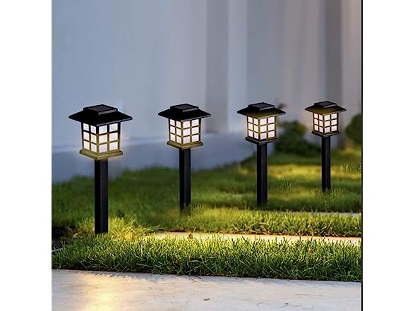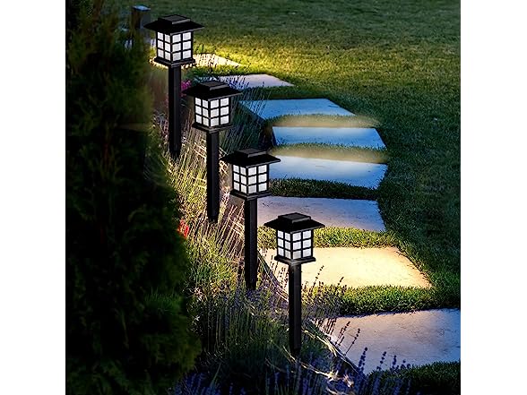 Each solar path light emits a warm white glow that lasts for 8 hours and the solar battery recharges every day while the sun is shining.