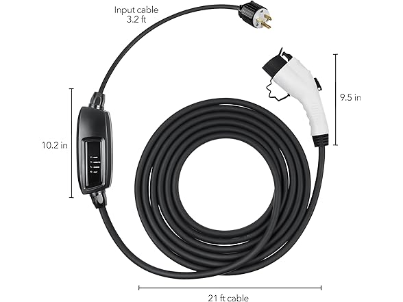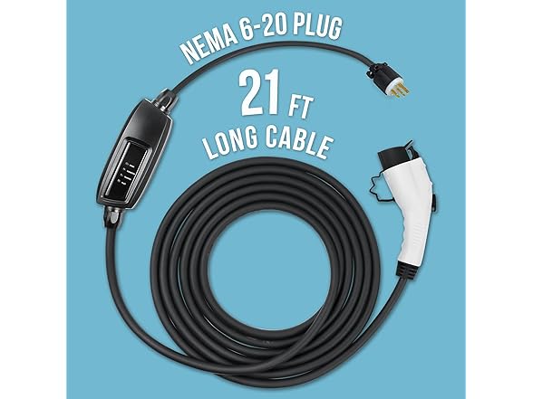 - FAST CHARGING – Designed to make EV charging quick and effortless. Utilizing the standard J1772 charging protocol, this charging cable is compatible with all electric cars and plug-in hybrid. Compact and durable, it is the perfect charging cable for home use and with a 21ft cable that’s long enough for most driveways or garages