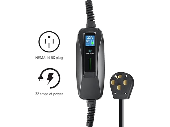 - FAST CHARGING - This product makes EV charging quick and effortless. It is compact and durable, making it the perfect 32 amp portable charger to use at home and on the go - plug into a NEMA 14-50 outlet, for 240 volts of powerful Level 2 charging