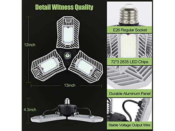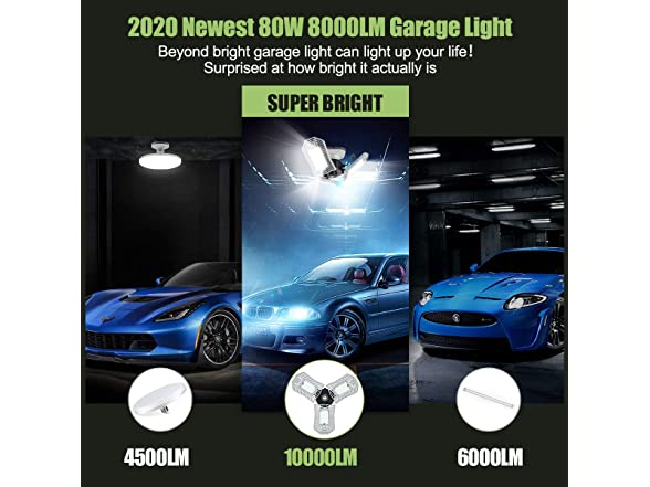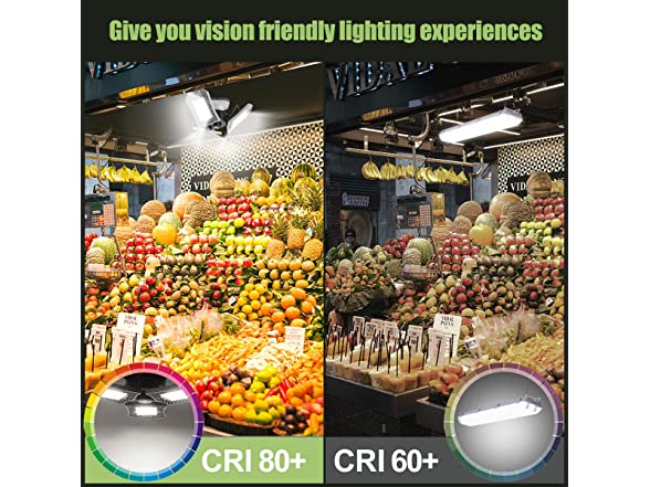 - 【Extreme Brightness Awesome Garage】8000LM 6000k with 3*72 PCS top quality LEDS Hit Darkness,Say goodbye to dim! Let garage lighting lighten your life! The brightness is beyond expectation which makes a huge difference for your garage basement,warehouse,studio etc