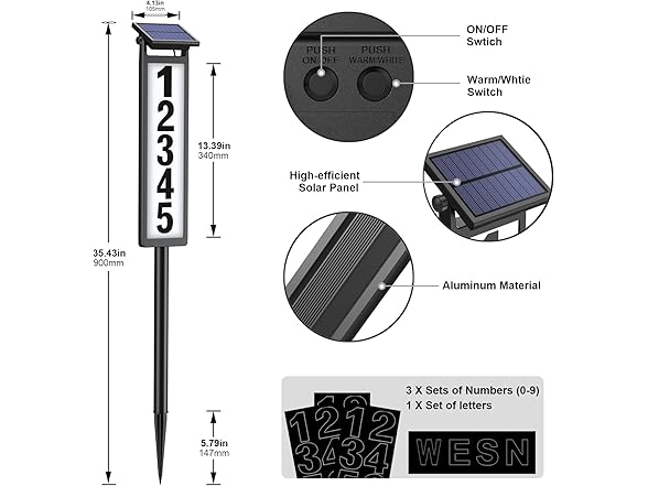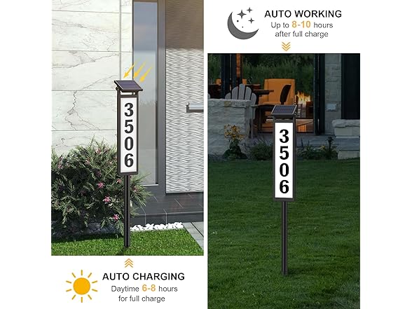 Solar Illuminated LED Lighted Address Sign, House Numbers for Outside Yard Home, Numbers Plaque Outdoor Waterproof, Black