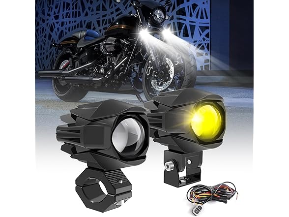 - Exceptional Performance: CO LIGHT motorcycle LED fog lights stand out from other similar priced products with only one or two lighting modes. Our lights offer 3 constant lighting and 4 strobe lighting modes: constant white(high beam with 6500K 10000LM), constant amber fog light(low beam with 3000K 8000LM), constant white+amber(combined beam), white strobe simultaneously and alternately, amber strobe simultaneously and alternately. Whether it's night, rainy, snowy, or foggy, these dual color LED lights help you see the road ahead clearly and avoid obstacles promptly.