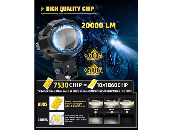 - High-Quality LED: CO LIGHT is dedicated to delivering the highest quality LED lights for a safer driving experience. Our motorcycle LED driving fog lights feature a 60W upgrade high intensity 7530 LED chip and a high-definition PMMA Lens, ensuring brighter and more focused light. The premium solid die-cast aluminum base housing ensures the pod lights are strong and durable.