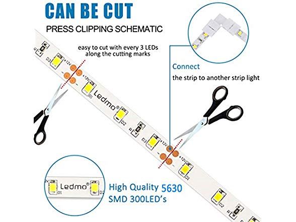 LEDMO Upgraded LED Strip Lights 2 Rolls 32.8Ft SMD5630 6000K Tape Lamp 300 Units 12V LED Lights Waterproof IP65 LED Rope Light for DIY Christmas Lights Home Decor Kitchen Bar Party Decorations