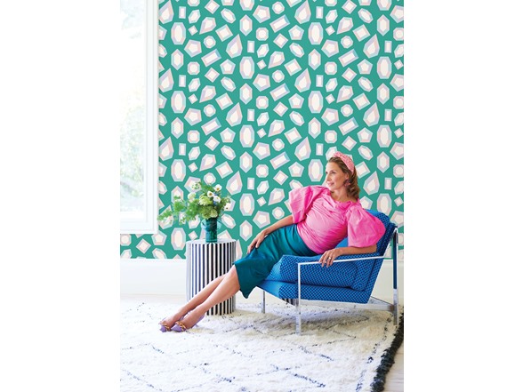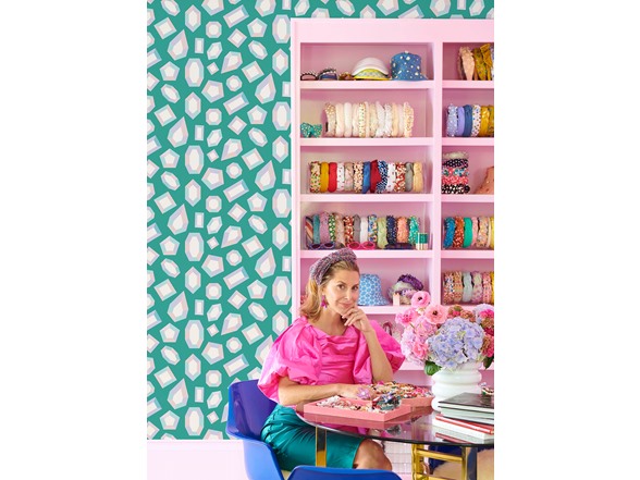 - These iconic, pink faceted gem designs "jewel up" a navy backdrop, perfect for any space that wants to be noticed.