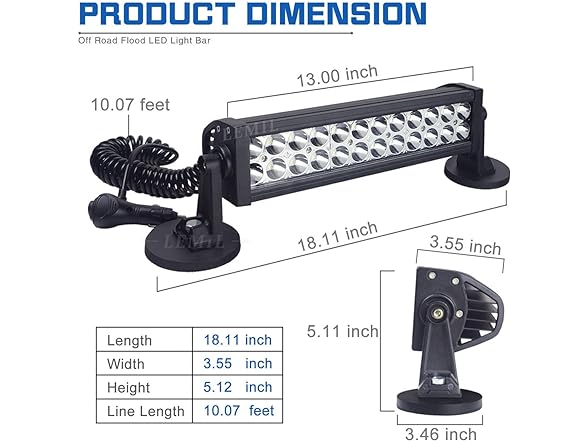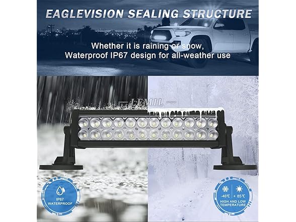 - 【HIGH PERFORMANCE】 - Die-cast aluminum housing for strength and durability. Upgrade PC lens surface with high light transmission. Special designed die-cast aluminum alloy heat sinks effectively extend the lifespan of the light bar to over 30,000 hours. IP67 Waterproof, dustproof, quakeproof and anti-corrosion for extreme environment.