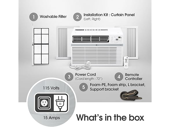 • Maximum Usability: Easy to use electronic controls with remote; Slide out washable filter with Check Filter alert; Remote control included