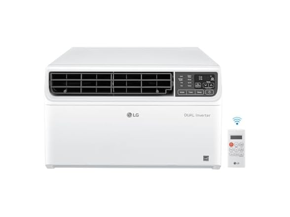 Designed to cool spaces up to 340 square feet, this LG window air conditioner is ideal for creating a comfortably cool environment in your kitchen or living room. With the revolutionary DUAL Inverter technology, this window AC unit operates with remarkable efficiency, potentially reducing your energy costs by up to 15%. Experience the convenience of controlling your air conditioner from anywhere using LG ThinQ technology. The versatile 4 cooling and fan speeds, coupled with a 24-hour timer, allow you to tailor a cooling schedule to match your lifestyle. Enjoy the benefits of the 4-way air deflection feature, which allows you to direct airflow exactly where it’s needed - be it cooling, dehumidifying, or circulating air for overall comfort. In the event of an outage, the auto-restart feature ensures that your AC unit will automatically resume operation once power is restored. Additional features include a remote control for effortless operation, an easy window installation kit, a removable and washable filter for improved air quality, and a convenient check filter alert to remind you of regular maintenance. Choose the LG Dual Inverter room air conditioners to experience exceptional cooling comfort, thanks to LG's commitment to innovation and energy efficiency.