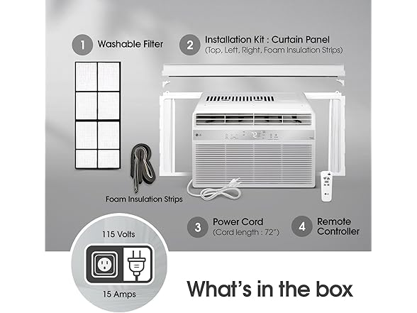 - Maximum Usability: 4-way air deflection gives you ultimate flexibility; This window unit ac also comes equipped with a filter light reminder, window installation kit, and a slide-out, washable filter