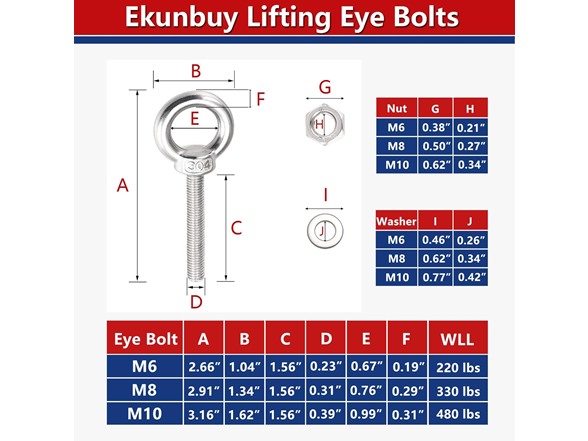 - ✔【Heavy Duty】M6 lifting eyebolt can carry up to 220 lbs. Working Load: 220 lbs. Broken Load: 440 lbs.