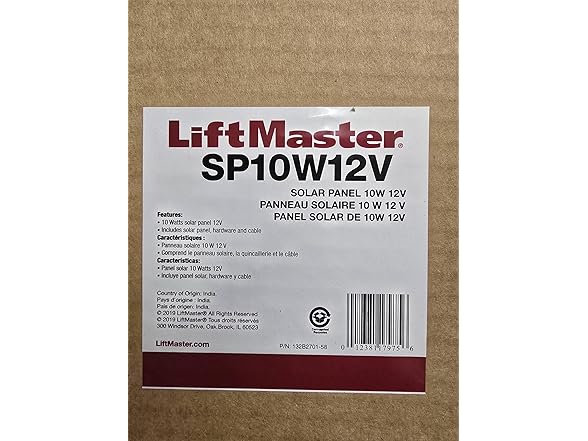 Key Features: 10W Power Output: The SP10W12V Solar Panel provides 10 watts of power at 12 volts, ensuring a steady energy supply to your gate operator. This efficient solar panel captures and converts sunlight into reliable energy, keeping your gate system functional even in challenging lighting conditions. Eco-Friendly Energy Source: By utilizing solar power, this panel helps you reduce electricity consumption and minimize your carbon footprint, making it an environmentally responsible choice for powering your gate system. Wide Compatibility: The LiftMaster SP10W12V Solar Panel is compatible with a variety of gate operators and 12V systems, offering flexibility and ease of integration into your existing setup. Durable, Weatherproof Design: Built to endure harsh weather conditions, the SP10W12V features a robust, weather-resistant construction that ensures reliable performance in any environment. Simple Installation: The panel comes with a mounting bracket, hardware, and a 10 ft. cable, simplifying the installation process. Whether you’re a DIY enthusiast or a professional installer, setting up this solar panel is quick and straightforward. Specifications: Solar Panel Output: 10W/12V Compatibility: Suitable for various gate operators and 12V systems Included Components: Mounting bracket, hardware, and 10 ft. cable Material: Durable, weather-resistant construction Installation: User-friendly with included mounting hardware Environmental Impact: Lowers electricity usage and supports sustainable energy practices