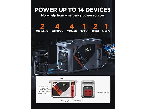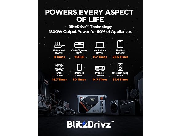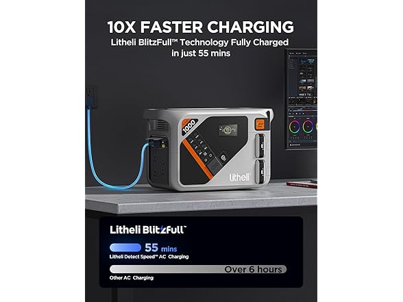 Litheli Portable Power Station Eclair 1000, 1800W Solar Generator, 1069Wh Outdoor Generator, 1H Fast Charging LiFePO4 Power Station for Outdoor Camping, Emergency and RVs(Solar Panels Optional)